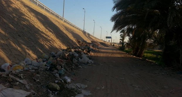 وعند خروجك من الجزيرة تجد تلال القمامة على الجانبين بششكل من الممكن أن يسبب مشاكل للكوبرى العلوى لو حدث حريق في هذه التلال ومن شأنة عمل حوادث وتعطيل الشريان الرئيسى للمواصلات من هذه الناحية ، ومن الممكن أيضا تعطيل حركة المرور واحداث كوارث .