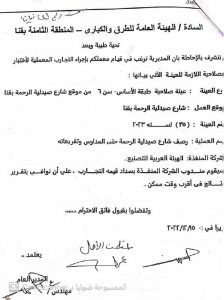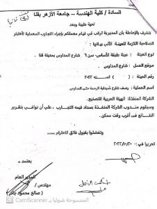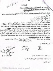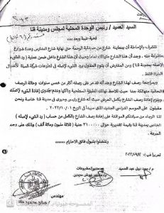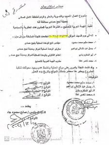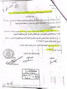 مستند رقم ( 4 ) الامر الذي اعترض عليه الجهاز المركزي للمحاسبات مع العلم ان طبيعة الارض تربه زلطية مفككة ومسافة النقل لا تتجاوز 2 كم تقريبا فلا داعي لمثل هذا السعر من الاساس او زيادة السعر بعد بدء تنفيذ العمليه بمده تجاوزت (7) اشهر مع العلم بان مدة العملية (6 اشهر) الكميات الواردة في مستخلص جاري (3) تختلف غير مطابقة للحصر المرفق بجاري (3) حيث ان المديرية قامت بالتلاعب في الكميات الواردة في المستخلص ارضاء للمقاول المنفذ دون الرجوع وتحري الدقة من جهة الاشراف علي الاعمال وهي هيئة الطرق والكباري بلغ الامر الي تزوير توقيع المهندس المشرف من قبل الهيئة في المستخلص المنوه عنه بعاليه .