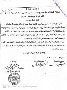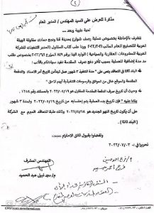 مستند رقم (5 ثالثا ) مذكرة بتاريخ 16/1/2022. وتم اسناد العملية الي الهيئة العربيه للتصنيع بامر اسناد مباشر بمبلغ وقدرة (17193450) بتاريخ عقد 19/1/2022 مع العلم بان المقايسة التقديرية للعملية في الطرح الاول لم يتجاوز 15 مليون جنيها مع العلم بان الهيئة العربية للتصنيع سبق وتقدمت لمناقصة عامة وتم رفض الهيئة لعدم الكفاءة الفنية وعدم امتلاك خلاطة اسفلتية داخل المدينة وعدم وجود تصنيف طرق لدي الاتحاد المصري للتشيد والبناء