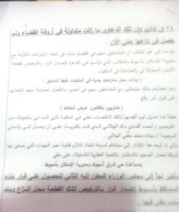 وكانت دعوى فرز وتجنيب برقم 42 لسنه 2015 والدعوى رقم 12403 لسنة 24ق ادارى والمتداولة حتى الان فى المحكمة كفيلة بايقاف اى تراخيص ستصدر للارض لانه نزاع على الملكية .