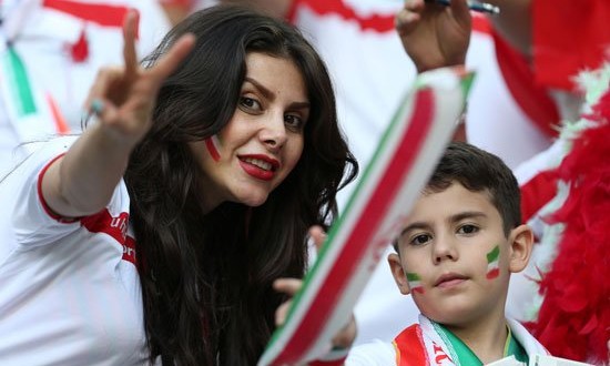 وفى الوقت نفسه، كانت جماهير الفريقين الأفضل خلال اللقاء، حيث انقسمت المدرجات باللونين الأبيض والأخضر، ورصدت كاميرات المصورين، قبلة ساخنة بين أحد العشاق فى المدرجات الإيرانية وعشيقته.