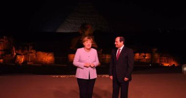 حضر الرئيس عبدالفتاح السيسى والمستشارة الألمانية أنجيلا ميركل الحفل الفنى المقام تحت سفح الأهرامات.