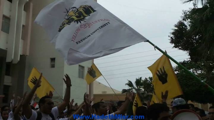 حيث طالب المتظاهرون أمام مديرية تعليم الفيوم محمود أبو الغيط وكيل الوزارة بالتدخل للإفراج عن زملائهم المعتقلين علي خلفية الاشتراك في التظاهرات والاحداث الاخيرة التي شهدتها المحافظة , بينما رفع المتظاهرون شارات رابعة العدوية , وبعض صور الضحايا ,والمعتقلين , مؤكدين علي استمرار ما اسموه بموجة الطلبة الثورية تحت مسمي” 19 مارس” حتي نهاية ابريل بالتزامن مع الاستعداد لبدأ امتحانات النصف الثاني من العام الدراسي.