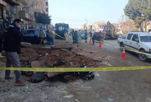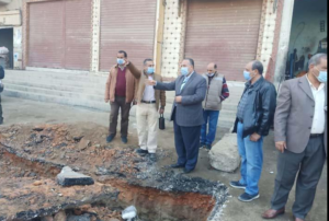وتبين من المعاينة الأولية أن الهبوط احدث حفرة بطول 20 متر وعمق 3 متر وتم فرض كردون حول موقع الهبوط ومراجعة جميع خطوط المياه والصرف والكهرباء والغاز بالمنطقة للتأكد من سلامتها وعدم وجود أي تسرب للمياه وتم معالجة الهبوط بالتربة الرملية والزلطية وتمهيد الطريق بالاستعانة بمعدات ولوادر الحملة الميكانيكية بالمركز لتحقيق السيولة المرورية.