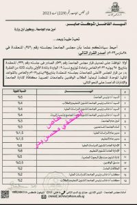 قام الدكتور أحمد المنشاوى رئيس جامعة أسيوط بتعديل قرار مجلس الجامعة رقم 572 الصادر فى جلستة رقم 733 المنعقدةبتاريخ 28 يونية 2022 الخاص باعادة توزيع نسبة 9% الواردة بالمادة الاولى بالبند ثالثا من الفقرة (د) من قرار المجلس الاعلى للجامعات بجلستة المنعقدة بتاريخ 19 يناير 2019 والخاص بالقوواعد المالية الموحدة المنظمة لرعاية الطلاب الوافدين بالجامعات المصرية مكافأة لادارة الجامعة والادارات الجامعة