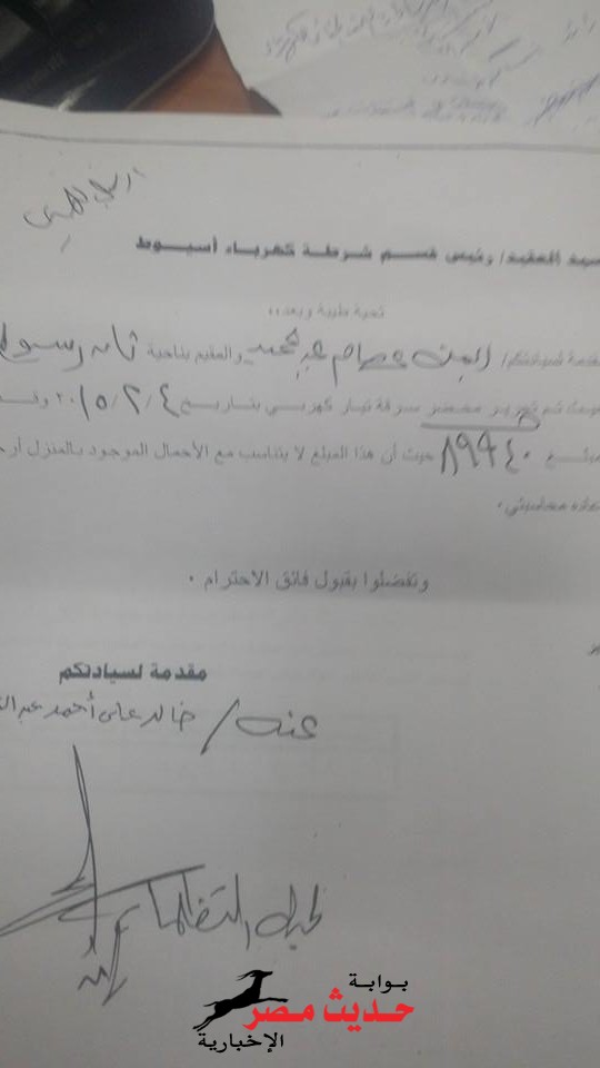 جدير بالذكر ان مباحث شرطة كهرباء اسيوط قد حررت محضر سرقة لمحل مكوجى رجل بمبلغ 12 الف وبعد التظلمات وصلت ل9 الاف والمكوجى مهدد بالسجن لانة لا يعرف مدير مباحث الكهرباء او احد المحاسيب.