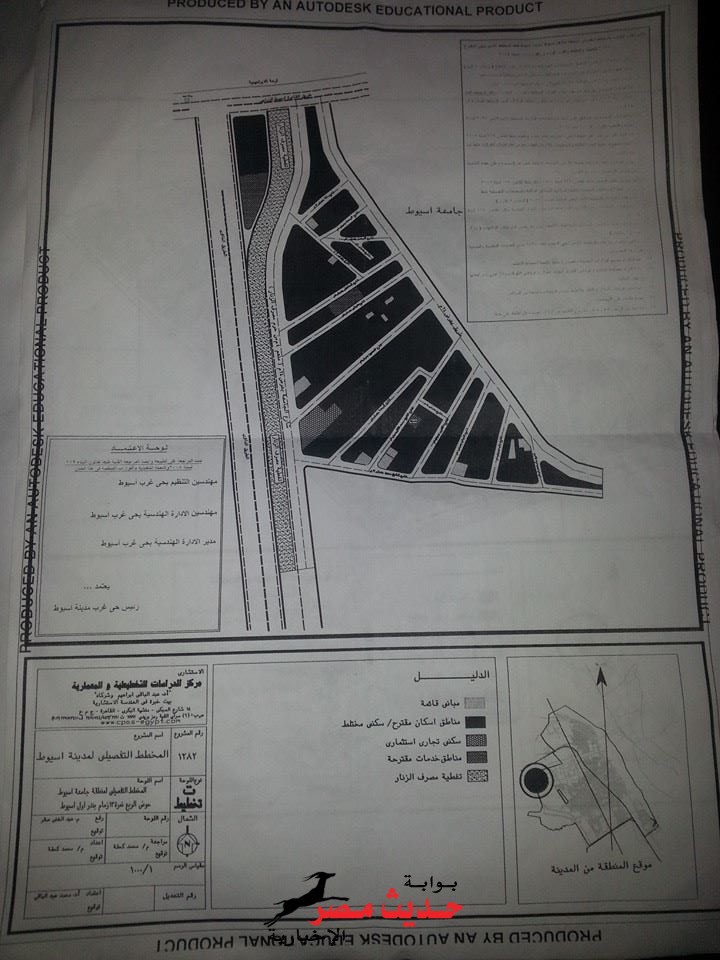 كشفت المستندات التى حصل عليها محسن بدر ان المخطط التفصيلى الجديدالذى كان سيصدر الشهر الماضى عن محافظة اسيوط ان بعض ملاك الاراضى وبعض رجال الاعمال بالتعاون مع بعض مهندسى الاحياء اتفقوا مع القائم على عمل التخطيط التفصيلى لمدينة اسيوط بتغيير مسميات التخطيط حتى يتم الاستفادة من تغيير هذة المسميات لصالح اراضيهم فقط دون اخرين ، وتثبت المستندات ان المنشور القديم الذى تم التوقيع علية من الاحياء بمدينة اسيوط دون الرجوع الى المحافظ او هيئة التخطيط العمرانى بالمحافظة انة لصالح مافيا وعصابة الاراضى حتى يمر الموضوع مرور الكرام امام اعين الجميع ، وعند فحص الخرائط التفصيلية كان الفساد البين ملفت للنظر .