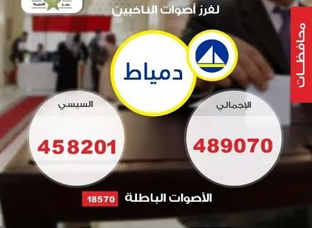 أعلنت الحملة الرسمية للمشير عبد الفتاح السيسي بمحافظة دمياط ، النتيجة النهائية لعملية فرز أصوات الناخبين في الانتخابات الرئاسية ، فكانت نتيجة الفرز في محافظة دمياط بالكامل :