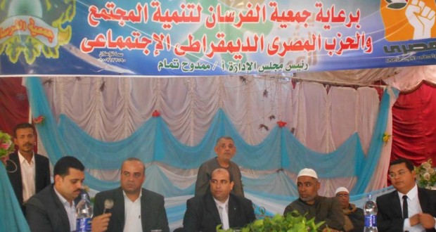 الاستاذ ممدوح تمام ورئيس الجمعيه و المهندس احمد محروس الشريف امين شباب الحزب المصرى بتوزيع هدايا عينه على