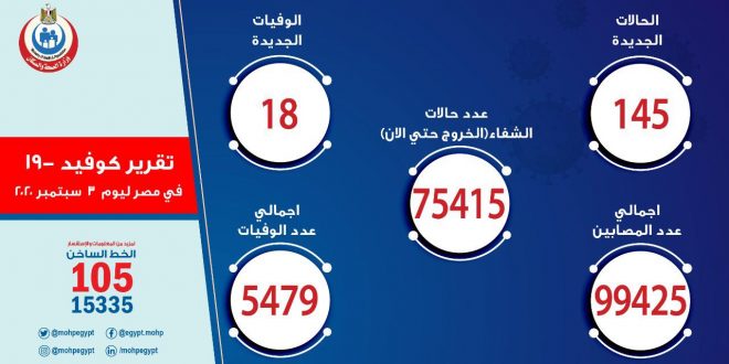 وذكر “مجاهد” أن إجمالي العدد الذي تم تسجيله في مصر بفيروس كورونا المستجد حتى أمس الخميس، هو 99425 حالة من ضمنهم 75415 حالة تم شفاؤها، و 5479 حالة وفاة.