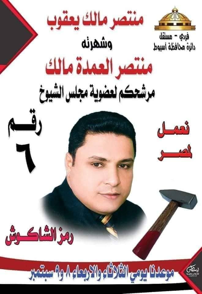 يذكر أن منتصر مالك يخوض الانتخابات مستقلا ، وكان والدة العمدة مالك يعقوب عضوا بمجلس الشورى عن الحزب الوطن قبل ثورة 2011 ، وهو من قرية العزية التى يقطن فيها حوالى 98 % من سكانها أقباط ، وكان عضوا بالهيئة العليا لحزب المصريين الاحرار وقدم استقالتة ليرشح نفسه فى انتخابات الشيوخ.
