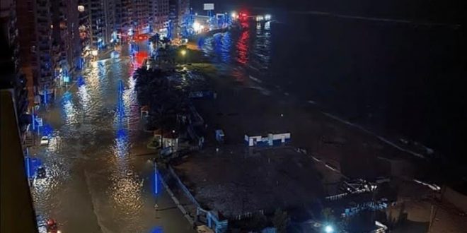 حيث ان ادت هذه الامطار الى غرق معظم مدن الاسكندريه و الكثير من الشوارع منها طريق الكورنيش الرئيسي.