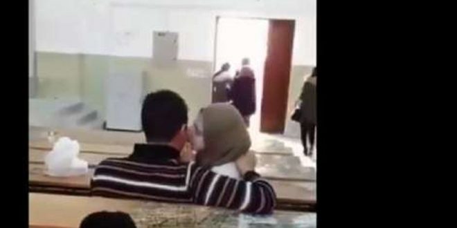 شهدت مواقع التواصل الاجتماعي واقعة جديدة أثارت جدلاً وغضباً، حيث تداول عدد من رواد “فيسبوك” و”تويتر” مقطع فيديو لطالب وطالبة جالسين داخل مدرج جامعي بإحدى الكليات، ويتبادلان القبلات.