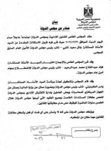 قال مجلس الدولة فى بيان رسمى له: إن المجلس الخاص لمجلس الدولة عقد اجتماعا عاجلا مساء اليوم، السبت، حيث قرر فيه قبول الاستقالة المقدمة من المستشار وائل شلبى نائب رئيس مجلس الدولة، وقرر المجلس اختيار المستشار فؤاد عبد الفتاح نائب رئيس مجلس الدولة للقيام بمهام أمين عام المجلس.