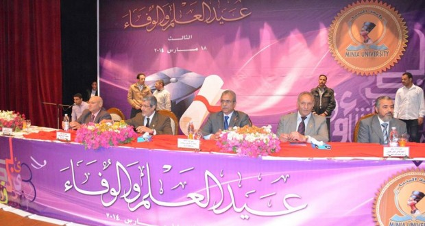 كرم اليوم اللواء صلاح الدين زيادة محافظ المنيا والدكتور محمد أحمد شريف رئيس جامعة المنيا اليوم الثلاثاء الموافق 18-3-2014 الأساتذة والعاملين المتميزين وتم منحهم شهادات تقدير وجوائز نقدية مقدمة من الجامعة فى الذكرى الثالثة لعيد العلم والوفاء الذي يتم تنظيمه