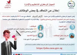 أعلن الجهاز المركزي للتنظيم والإدارة، بالتعاون مع الأزهر الشريف، عن إطلاق مسابقة لتعيين 5526 معلم مساعد في مادة الرياضيات للمراحل التعليمية المختلفة (الابتدائي، الإعدادي، الثانوي)، وذلك ضمن الإدارات التعليمية في مختلف محافظات الجمهورية.