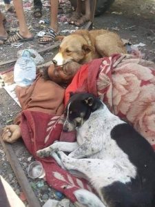 وأكدت صحفية عدن اليوم اليمنية، أن “كلاب ضالة أحاطت برجل يمني مشرد قضى سنوات من حياته في رعاية الكلاب الضالة عند موته، ورفضت السماح لأحد الاقتراب من جثته”.