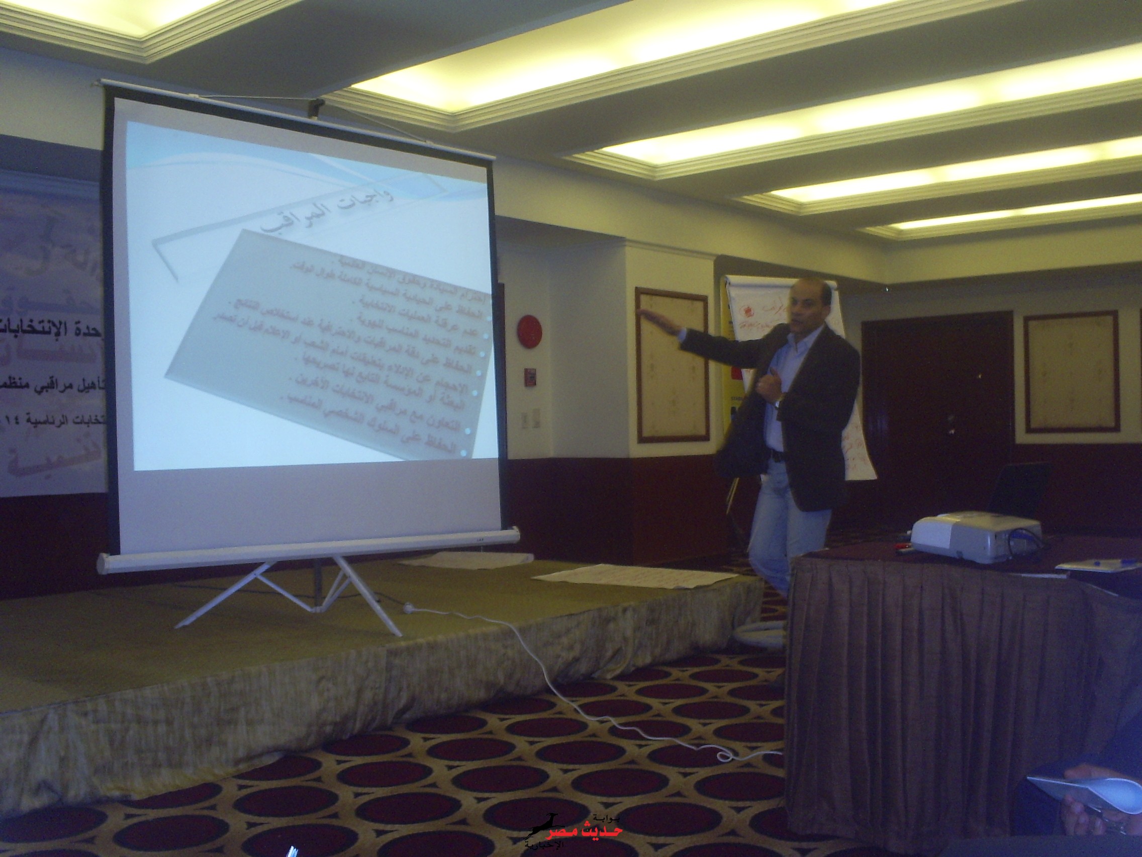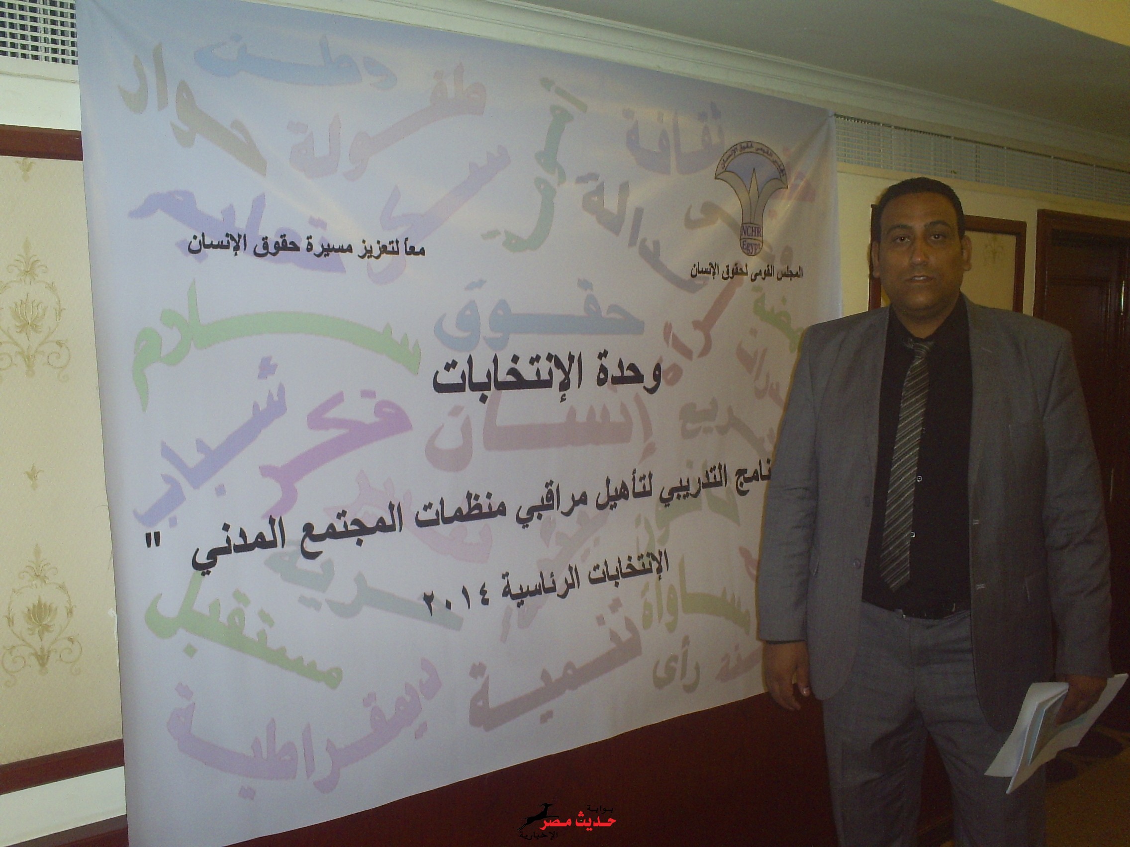 الامانه العامه لمنظمه مصر الحره لحقوق الانسان بالجيزه برئاسه الاستاذ عبده حامد فى ضيافه المجلس القومى لحقوق الانسان بفندق سفير بالدقى وذلك لحضور محاضرات التدريب على الرصد والرقابه والمتابعه للانتخابات الرئاسيه القادمه فى وحضور عدد من قيادات وكودار منظمه مصر الحره لحقوق الانسان بامانه القاهره والجيزه للمشاركه فى فعاليات المجبس القومى لحقوق الانسان فى حضور عدد من منظمات المجتمع المدنى المختلفه تم اختيار الامين العام لمنظمه مصر الحره بالجيزه للقاء كلمه على الحضور وشرح وافى لحقوق المراقب وواجباته وسط الكوادر والقيادات والمدربين من المجلس القومى لحقوق الانسان الذى اشادو ا بدور المنظمه وقياداتها وأعضاءها على مستوى الجمهوريه وأكدوا على ضرورة المشاركه الفاعله للمنظمات المجتمع المدنى فى الشارع السياسى للتوعيه والتدريب للمواطنين بالحقوق والواجبات اتجاه الدوله والوطن وأضف عبده حامد ان منظمه مصر الحره لحقوق الانسان وقياداتهاوكوادرها على اتم الاستعداد منذ اللحظه الاولى من أشهار المنظمه فى عام 2013 على النزةل للشارع وسط هموم الناس للتعارف على متاعب وهموم المواطنين واكد حامد ان الاستاذ خميس الدمنهورى رئيس المنظمه فى اجتماع الجمعيه العموميه الماضيه أشاد بدور الدوله فى انقاذ مصر من الارهاب ويطالب كل مؤسسات الدوله العمل بروح الفريق لان المرحله فى حاجه لكل مصرى وطنى غيور على بلده للوقوف وراء الدوله وقيادتها للنهوض بها من اجل الوطن والمواطنين .