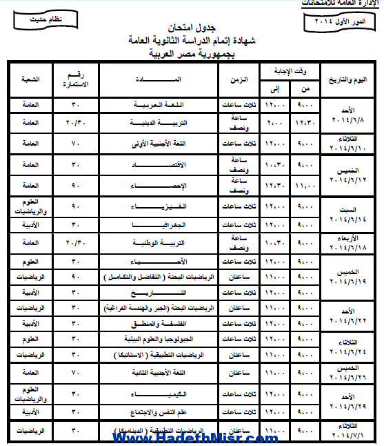 أكمل القراءة »جدول امتحان الشهادة الثانوية العامة 2014