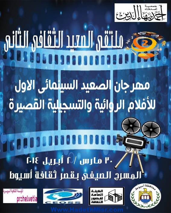 أسيوط / هيام السكرى تقيم غداً جمعية أصدقاء بهاء الدين مهرجان الصعيد السينمائى الأول للأفلام الروائية والتسجيلية القصيرة وذلك من 30مارس إلى 2 أبريل على قصر ثقافة أسيوط.