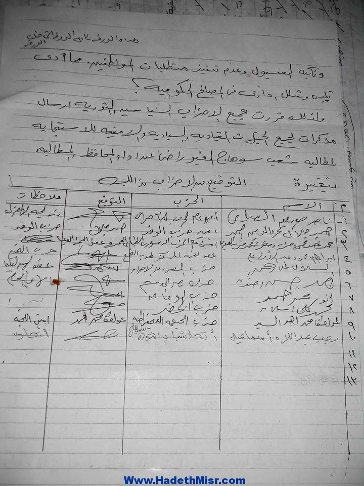 شيماء سرور أصدرت اللجنة التنسيقية للأحزاب والقوى الثورية واتحاد شباب الثورة يبسوهاج ، بياناً طالبت فيه الجهات المعنية ورئاسة الوزراء بإقالة محافظة سوهاج . جاءذلك في اجتماع عدد من ممثلي الأحزاب والقوى الثورية بالمحافظة ، بمقر حزب الجبهة الديمقراطي،حيث قدم …