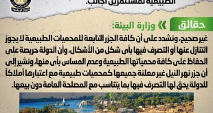 أكمل القراءة »“نتبيه” .. لا صحة لبيع بعض جزر نهر النيل التابعة للمحميات الطبيعية لمستثمرين أجانب