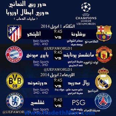 أكمل القراءة »جدول مباريات ذهاب ربع نهائي دوري أبطال أوروبا والقنوات الناقلة والمعلقين.
