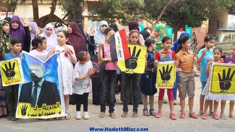 هند الشيال قام اعضاء الجماعة الارهابية بقرية الخياطةبدمياط عصر اليوم الخميس بتنظيم وقفة حيث قاموا خلالها باستغلال الاطفال لتجنب الوقوع فى اشتباكات او سقوط مصابين منهم وكانوا يحملون اللافتات التى تحمل من العبارات المسيئة ضد المشير السيسي .