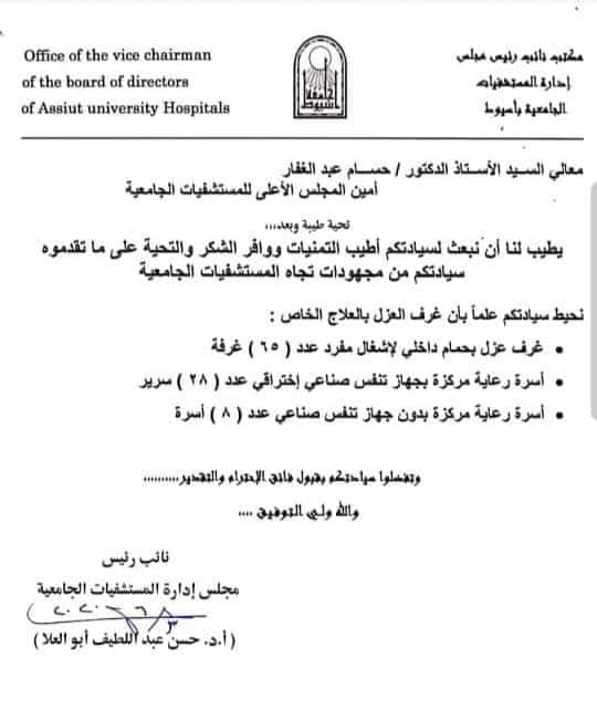 أعلنت أدارة مستشفيات جامعة أسيوط عن خطه الاسعار الخاصة بغرف العزل بالعلاج الخاص وذلك للمصابين بفيروس ايجابى الكورونا كوفيد19 ، وذلك بعد قرار وزارة الصحة المصرية عن تحديد تكلفة العزل بالقسم الداخلي بين 1500 و3000 جنيه لليلة الواحدة، في حين …