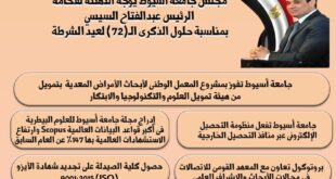 مجلس جامعة أسيوط يعقد اجتماعه الشهري برئاسة الدكتور أحمد المنشاوي مجلس الجامعة يوجه التهنئة لفخامة الرئيس عبد الفتاح السيسي بالذكرى ال(72) لعيد الشرطة – د.المنشاوي يؤكد على ضرورة تعظيم الاستفادة من “معرض القاهرة الدولي للكتاب” في نسخته ال55 خلال فترة …