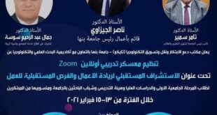 كتب محمد صوابى ينظم مكتب دعم الابتكار ونقل وتسويق التكنولوجيا (تايكو) – جامعة بنها بالتعاون مع أكاديمية البحث العلمي والتكنولوجيا معسكر تدريبي أونلاين Zoom تحت عنوان “الاستشراف المستقبلي لريادة الأعمال والفرص المستقبلية للعمل”. ياتى ذلك تحت رعاية الدكتور ناصر الجيزاوي …